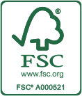 The FSC certification guarantees that only wood from sustainable timber industry is used and that logged areas are afforested with new trees.